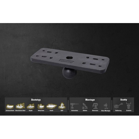Le L803 est une plate-forme parfaite pour attacher des caméras, GPS ou sonar à votre bateau. Cela vous donne une grande surface (203 mm x 75 mm) sur laquelle vous pouvez fixer n’importe quel appareil nécessitant une surface plane. La plate-forme a une bille de 1,5 « et peut être fixée au bateau avec un connecteur et une autre boule de 1,5 ». Les systèmes de balles sont très serrés et vous pouvez les aligner parfaitement.